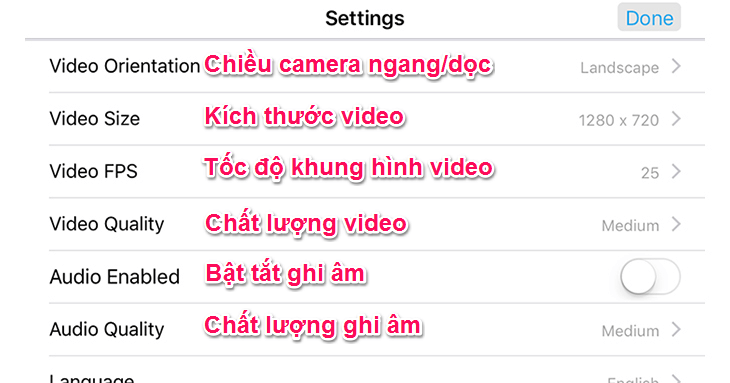 Or you can click the settings icon to further refine some camera components. However, the settings here can greatly affect the quality and process of video transmission, if there are any problems please set these settings to the default.