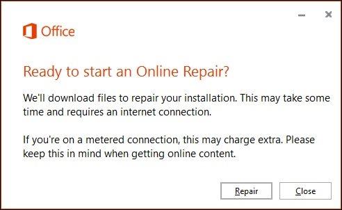Choose how to fix the error. You can choose one of two options: Quick Repair or Online Repair.