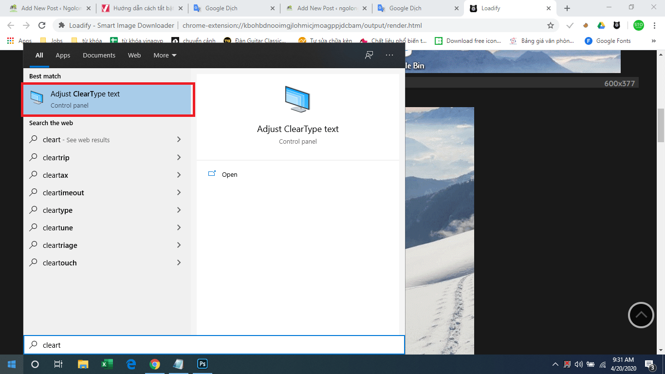 Instructions on how to turn off the Clear Type Text mode in Windows 10, how to use Windows 10 with images and videos, the text in the menu overlap