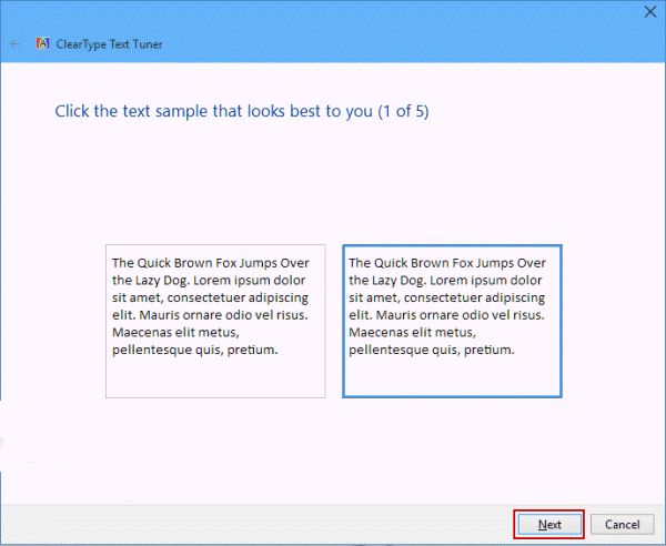 Select Turn on ClearType -> Next