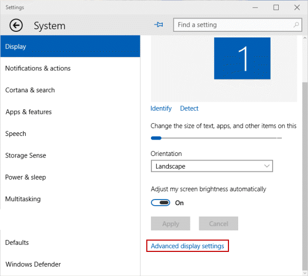 in theStart menu, selectSystemand click onAdvanced display settings