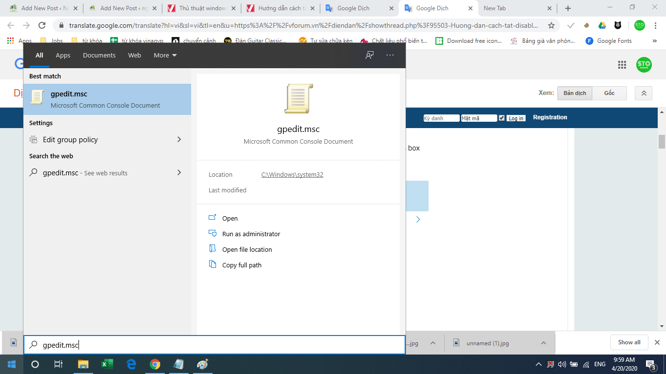 First you enter the Search box of win 10 from: gpedit.msc -> Select gpedit.msc in the results box