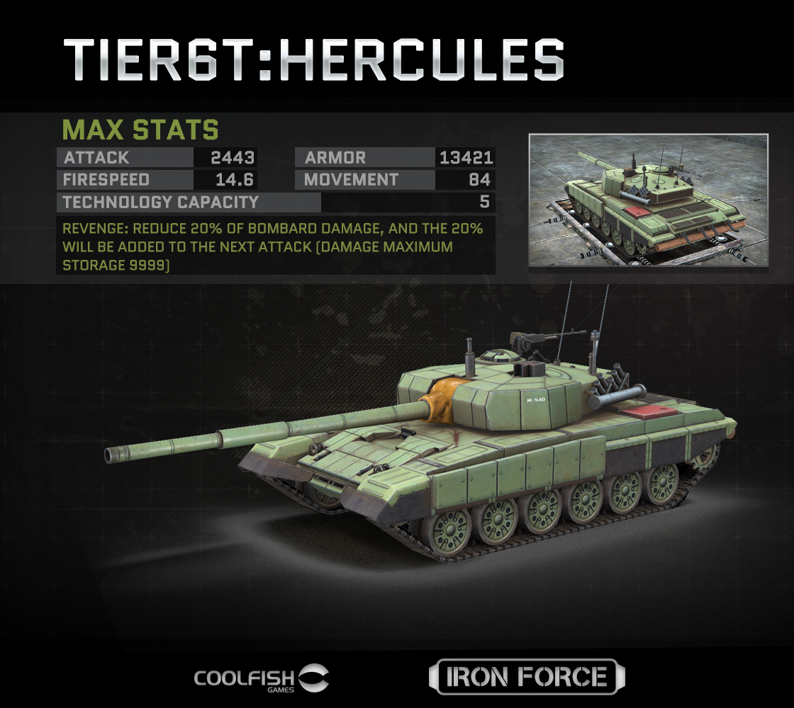 😍 New Tank Spoiler Alert! This Thursday, December 15, Iron Force will update to v 3.17, and present you the dominating new Tank: HERCULES!