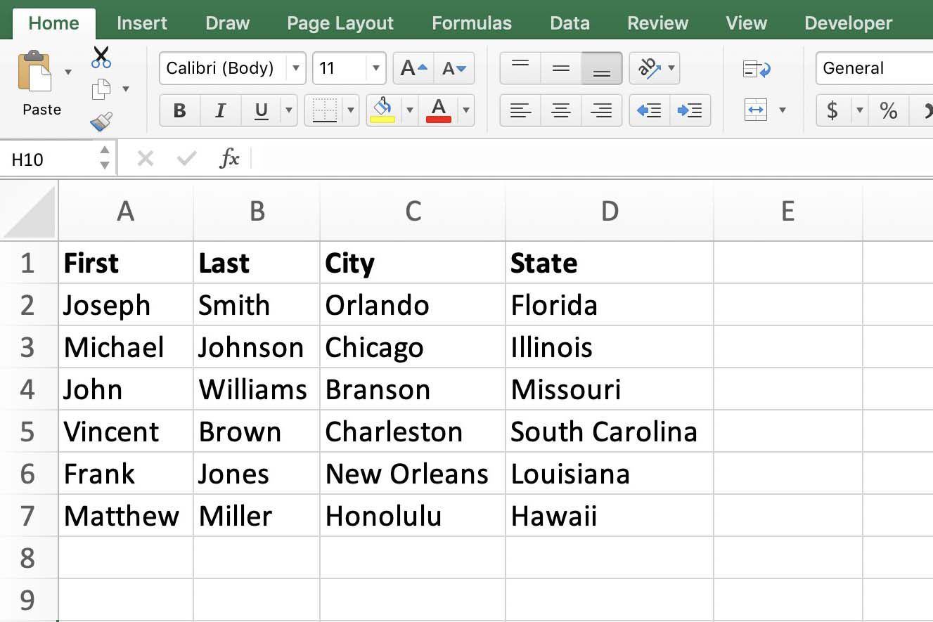 – Step 1: Create an excel spreadsheet fields (these fields will be created corresponding to the required information filled inside the word)