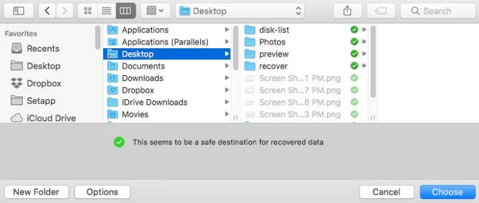 Step 4. Click the Recover button in the top-right corner and specify the recovery destination. Click Choose to begin the recovery process.