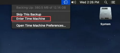 Step 2. Click the Time Machine icon located in the Menu Bar and choose Enter Time Machine.