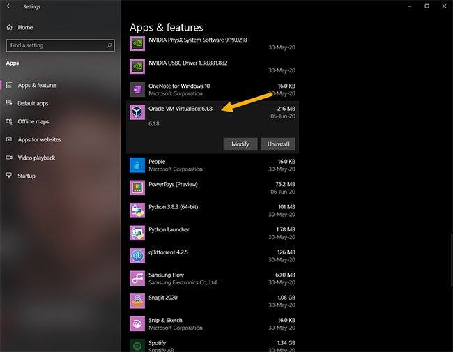 5. Find the incompatible application you want to uninstall.