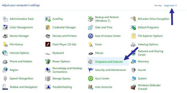 Click on the Programs and Features option