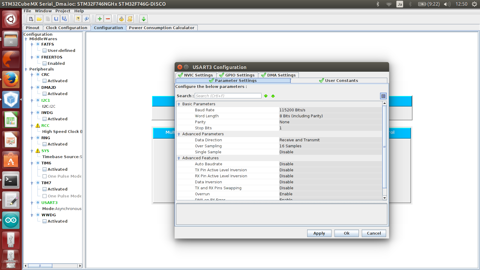 USART setting USART3 -> asynchronous PD9 : TX PD8: RX
