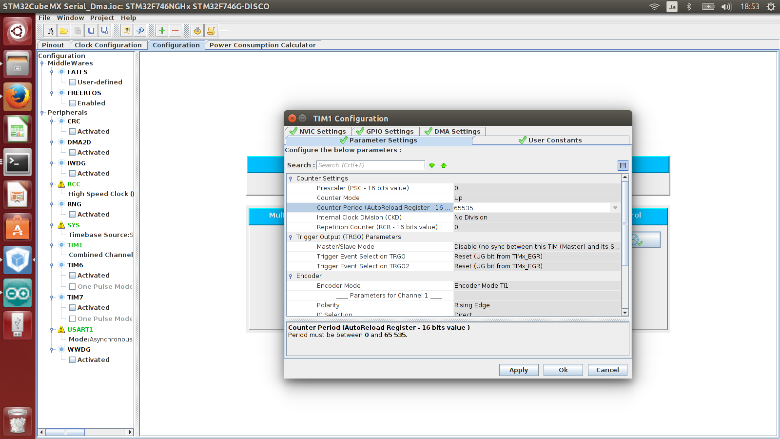 Stm32cubemx Encoder (Using Timer) This post show how to get data from rotary encoder by using timer and send data to PC by usb-serial converter . Nucleo 144 board used. You can do the same with other board .