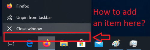 Windows 10 – Taskbar – Add item to context menu for each program. need a
