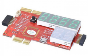 Mainboard disease diagnosis by test card. Computer motherboard repair work usually takes a lot of