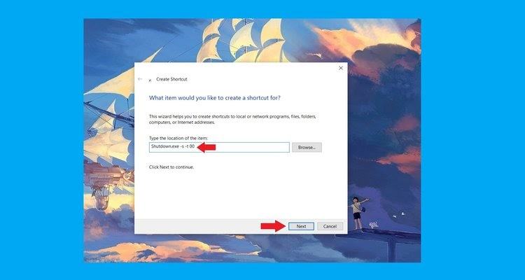 Step 2 : Next, enter the command Shutdown.exe -s -t 00 and click Next .