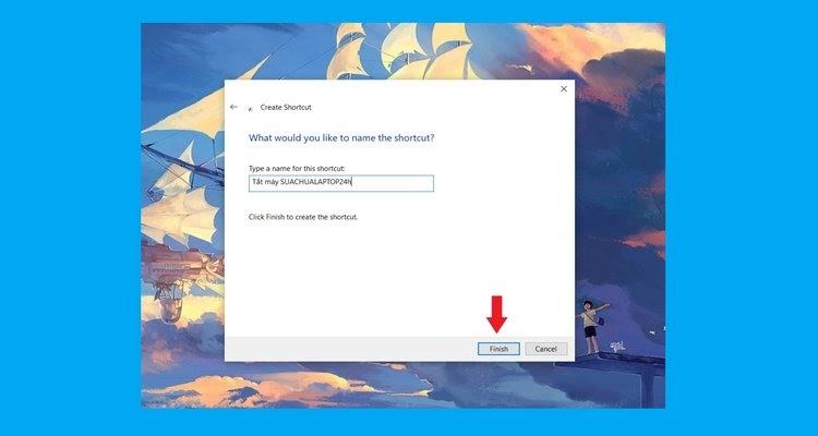 Step 3 : Rename the Shortcut as you like and click Finish as shown in the picture, the name of the change is Shutdown .