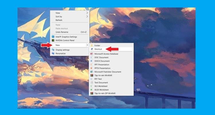 Step 1 : At the main screen, right-click and select New, and then select Shortcut .