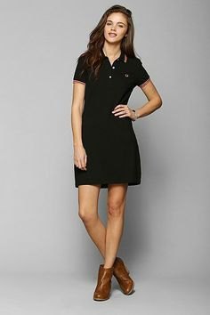 Can we wear some shoes with a polo shirt that are not sneakers? Yes, you can. For a look that is less casual, you can wear a black polo shirt dress with brown leather ankle boots.