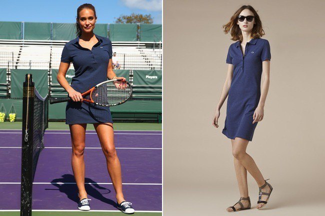 The above picture shows you that with the same polo shirt dress, the choice of shoes can really make a world of difference. You can achieve a sporty and refreshing look by wear the navy polo shirt dress with a pair of sneakers, while you can look more elegant with the sandals.