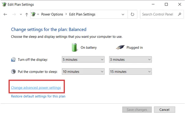 STEP 2- Navigate to Edit Plan settings and click Change advanced power settings.