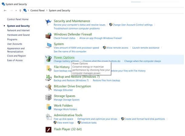 STEP 1- Go to Control Panel and navigate to Power Options.