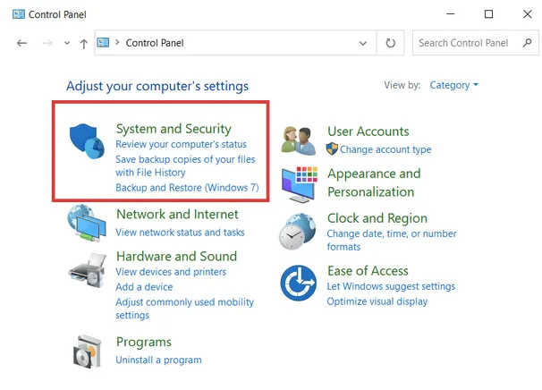 STEP 2- From the next window, navigate to the System and Security module.