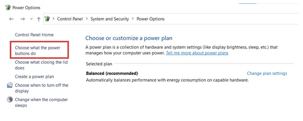 STEP 4- Next is Select the function of the power buttons from the left panel.