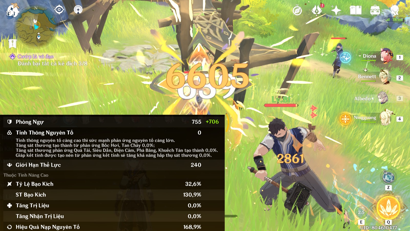 - The guide I’m using: Lv75, 1455 DEF, skill E lv7, 83% st Nham, 130% Crit damage, slightly low Crit rate because I’m using a temporary relic from another char. And are using to earn event lv40 tl1. Flowers burst crit 6m-6m7 dmg