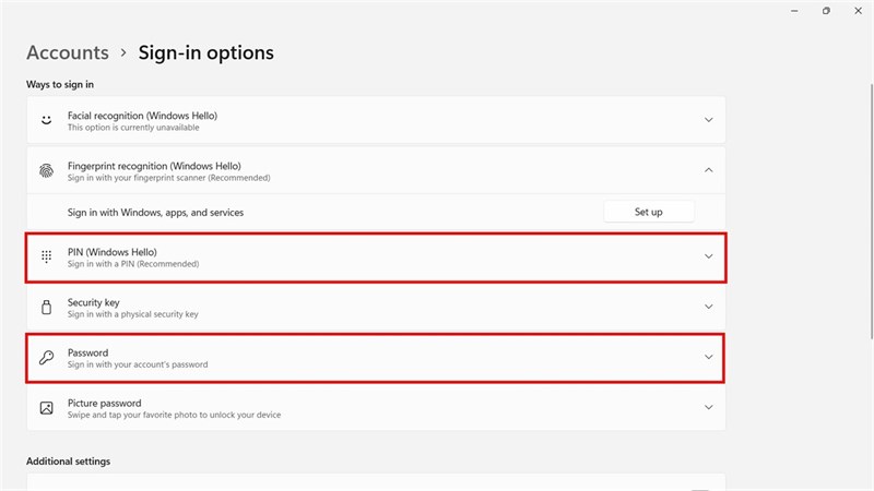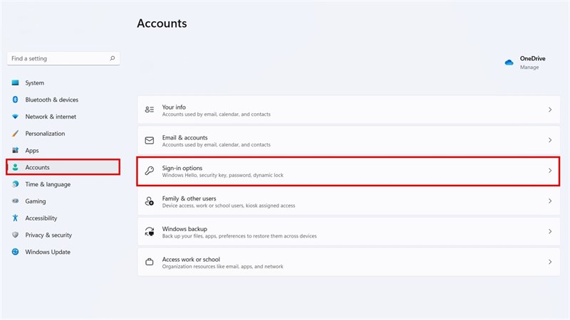 - Go to Accounts, then select the Sign-in options.