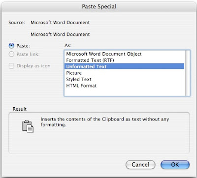 - Then right click on the copied area, choose Paste Special>Unformatted Text.